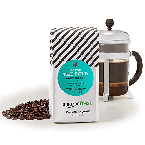 Our AmazonFresh Go For The Bold dark roast whole bean coffee is made with high quality 100% Arabica beans, expertly roasted and immediately packed for freshness. This full-bodied blend has a notes of dark chocolate, making it bold in flavor and destined to please.