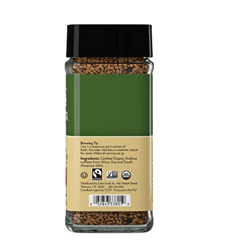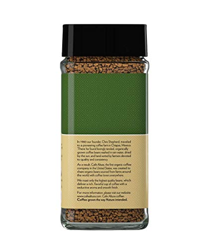 Cafe Altura Freeze Dried Instant Coffee is an exclusively sourced blend of organically grown 100 percent Arabica Coffees selected from three continents. Then it’s freeze dried by an exclusive Certified organic process to maintain the taste and aroma of real coffee. All coffee is grown sustainably by small farm indigenous growers who form the basis for Fair Trade exchange. Contains 2 – 3.53 Ounce Jars