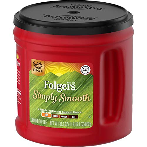 Smooth out the wrinkles of your morning routine with a mug of Folgers Simply Smooth coffee, a mild roast coffee that delivers mellow and balanced flavor specially roasted to reduce certain irritants associated with stomach discomfort. This mild blend is packaged in an AromaSeal canister designed to help maintain freshness and contains up to 240 suggested strength 6-fl oz servings. As a 100% pure ground coffee blend, you can brew yourself a cup with virtually any coffee maker. Stock up now so you can sip with confidence, knowing that the Best Part of Wakin’ Up was made with gentleness in mind.