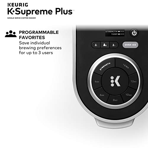 The K-Supreme Plus brewer brings customization to a whole new level, making it easier than ever to enjoy your perfect cup every time. Choose from 3 strength and 3 temperature settings, so you can have a stronger, hotter cup, or brew hot over ice for a refreshing iced coffee. This coffee maker also features programmable favorites, so up to 3 users can save their own individual brewing preferences.
