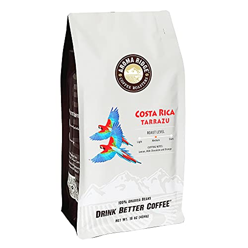 Tarrazu Costa Rica Swiss Water Process Decaf Whole Bean Coffee by Aroma Ridge. This 16oz bag of medium roast coffee is a full bodied blend with a sweet-nutty finish. Swiss process decaf coffee is created using a 100% chemical free soak to obtain beans that are 99.9% caffeine-free, while retaining healthful antioxidants.